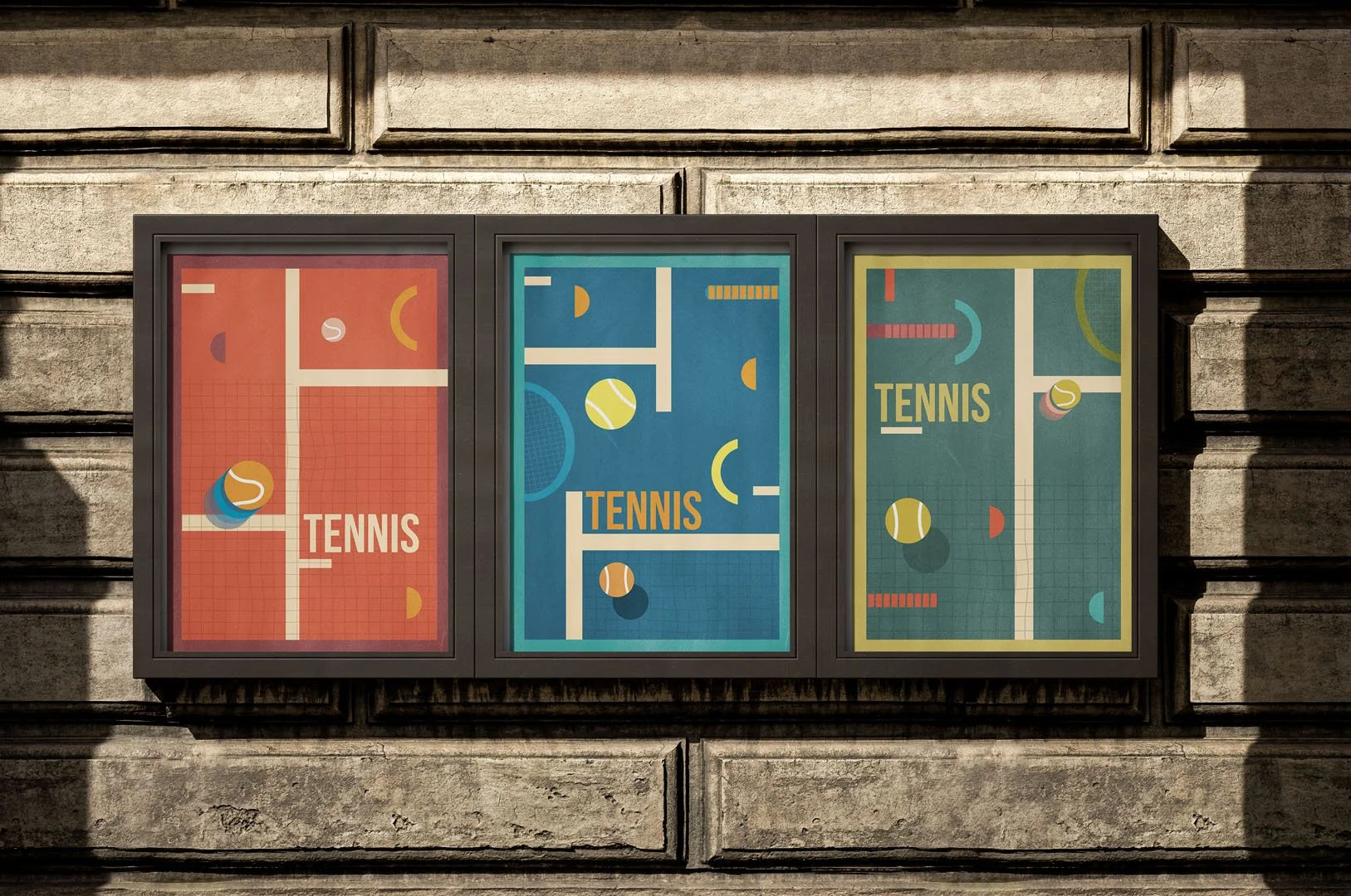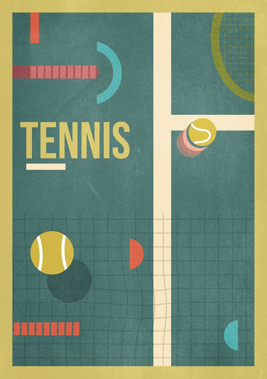 Affiches graphiques réalisées pour une exposition sur la thématique du Sport : disciplines Tennis et Ping-pong.