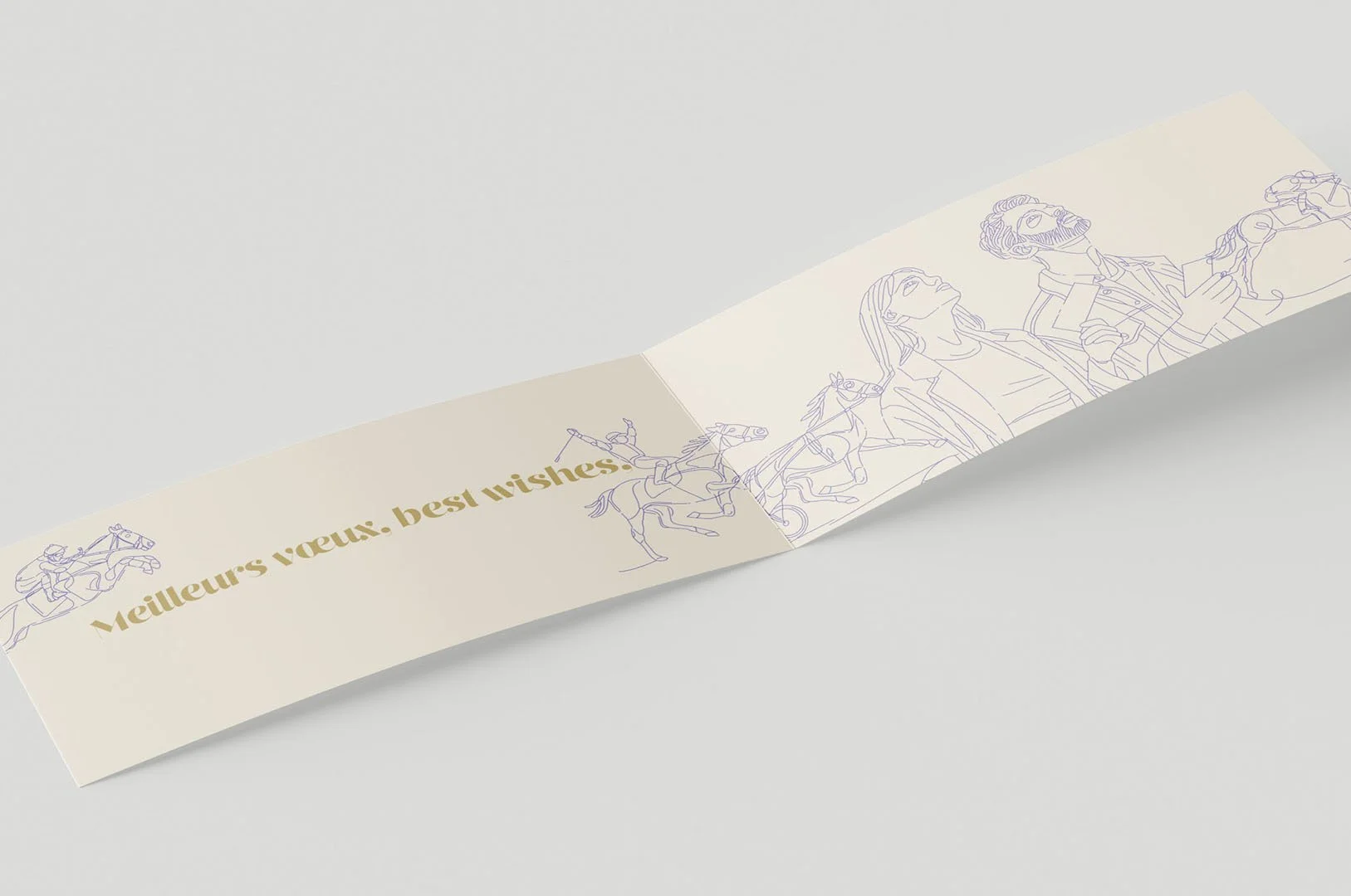 Nous avons créé la carte de vœux 2025 avec des illustrations uniques pour l'Institut des Courses Hippiques.